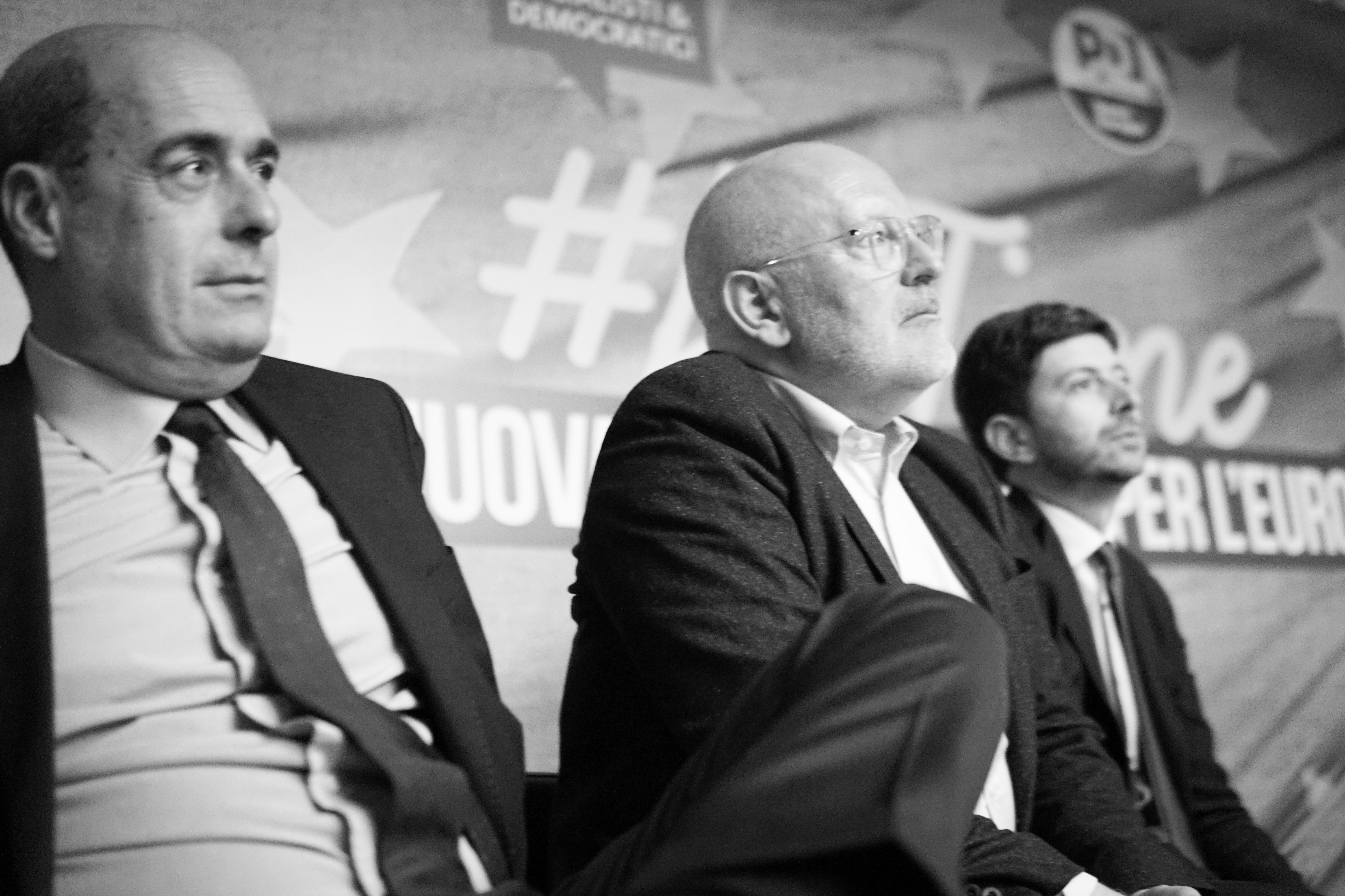 “Non ce la faccio più”, sospira uno stanchissimo Nicola Zingaretti quando David Sassoli va a salutarlo. E dire che il comizio che vede per la prima volta insieme il segretario del Pd, quello degli scissionisti Mdp, Roberto Speranza, e il candidato Pse alla guida della Commissione europea, Frans Timmermans, è appena cominciato. Ma per Zinga il tour elettorale europee dura da settimane: un giro fra città e paesini di cui i telegiornali, si lamenterà lui stesso poco dopo dal palco, sembrano quasi non accorgersi.