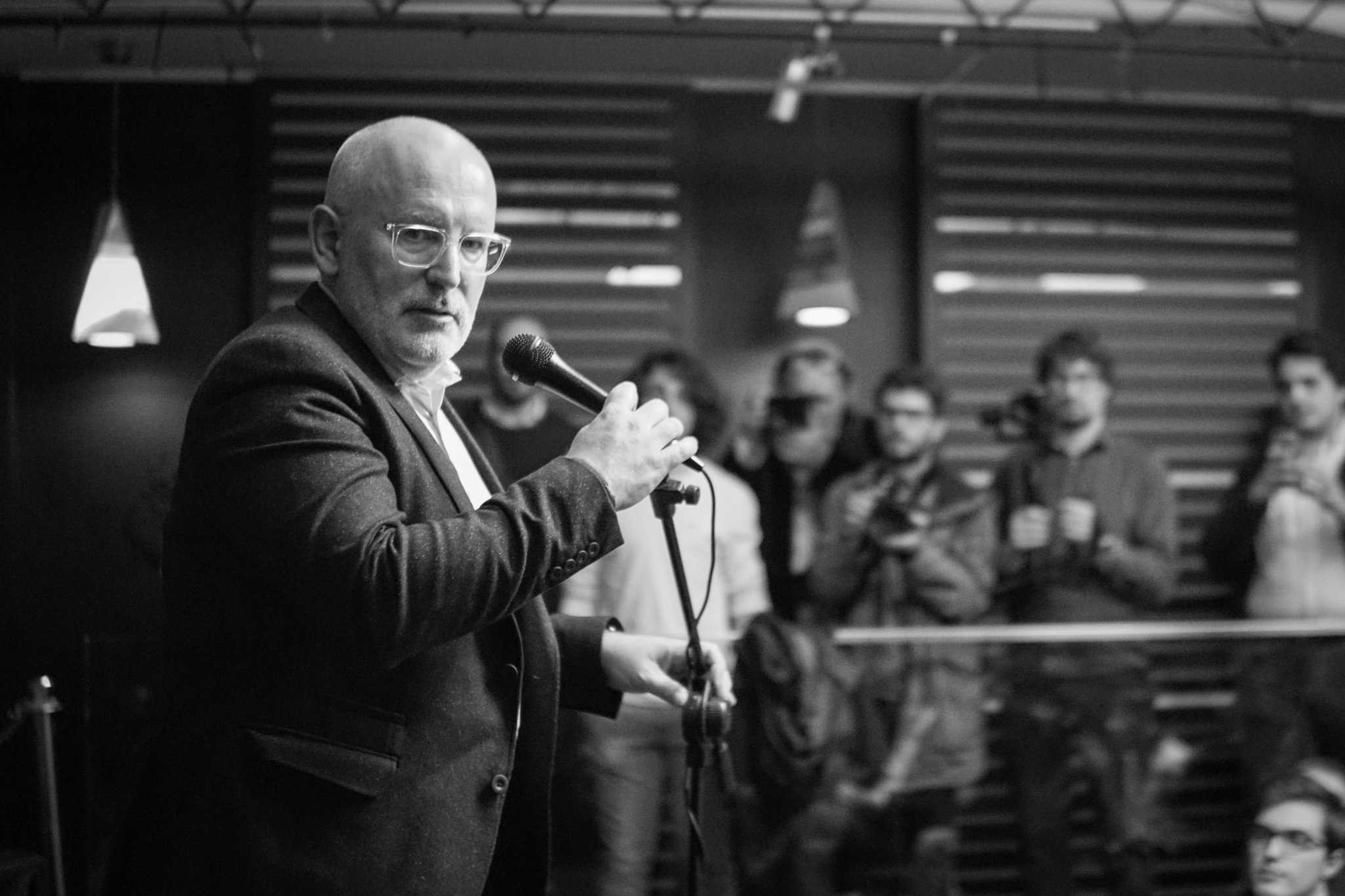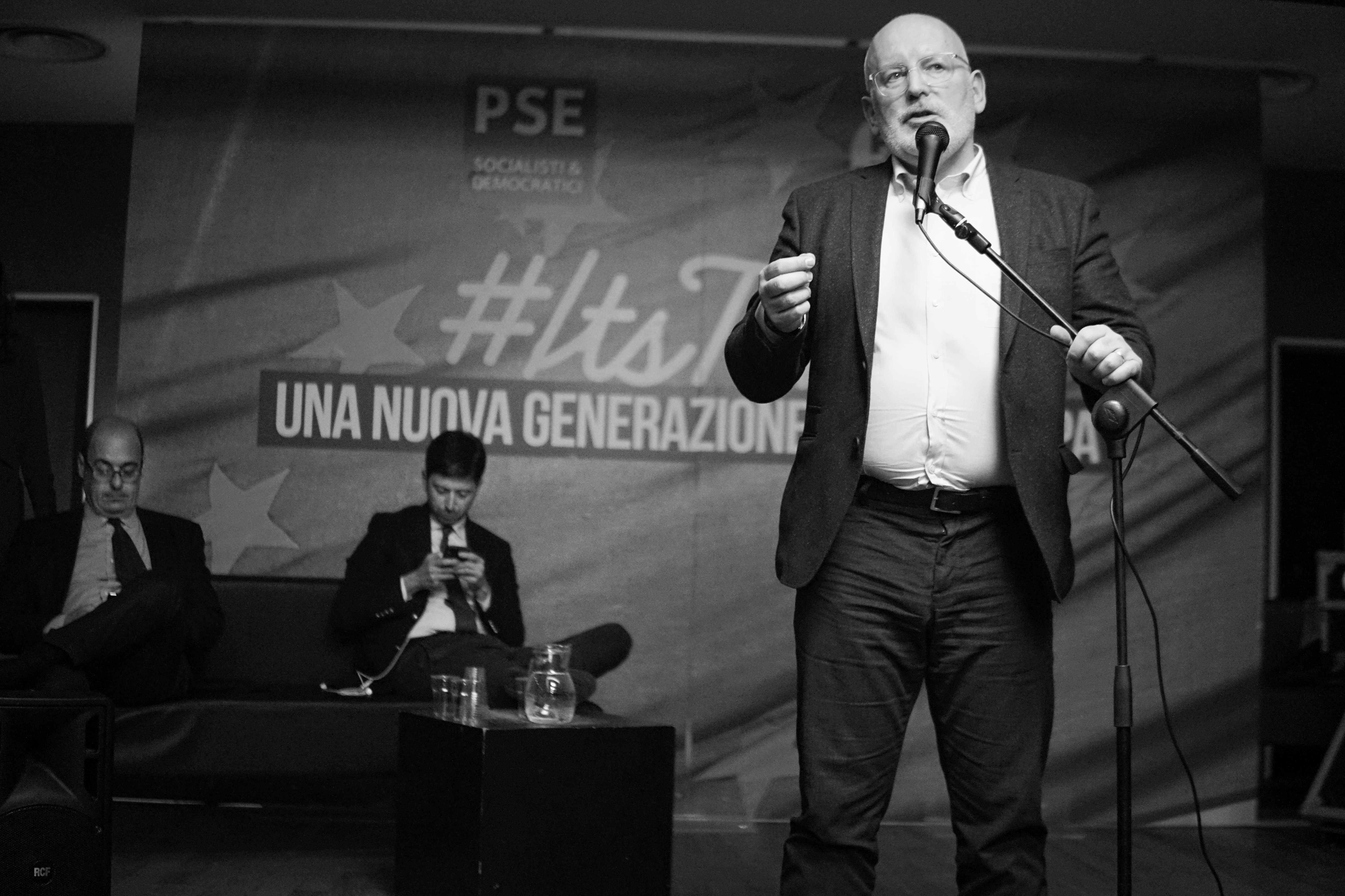 Timmermans è un robusto olandese innamorato del Belpaese, parla un italiano impeccabile e deve aver capito quali sono i tasti su cui i nostri politici battono per cercare il contatto con il popolo. “Sappiate”, esordisce, “che per me in Italia c’è un solo capitano: Francesco Totti”, rispondendo alla scherzosa lamentatio di Speranza per l’addio di De Rossi. Poi, però, le proposte concrete le tira fuori, e sono intonate al registro dell’incontro: salario minimo europeo, tassa per le multinazionali almeno al 18%, azzerare le differenze salariali fra uomini e donne, un piano per l’emergenza abitativa. Ah, sì: e un programma Erasmus per gli studenti africani. Volevate una conferma che Timmermans legge molto i giornali italiani? Eccola: “Ho visto questo ragazzo di Torre Maura, Simone… e mi ha ispirato… il suo coraggio dovrebbe ispirare tutti noi”. Per ora ispira gli applausi, fragorosi, della platea.